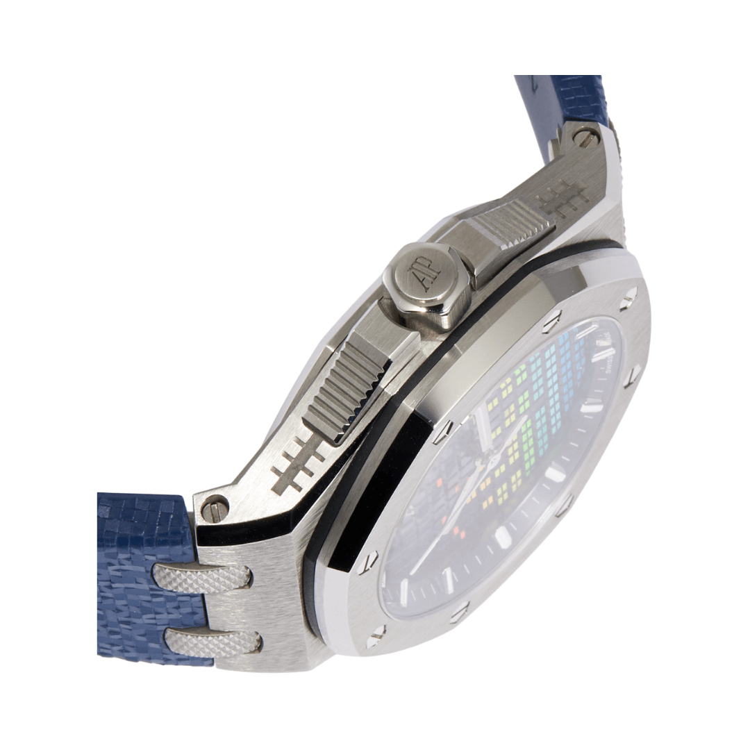 This unique timepiece embodies Audemars Piguet’s commitment to innovation and craftsmanship. The dial mirrors a VU meter, displaying time in a way that echoes the rhythm of music. To carry the theme further, the watch features push-piece guards that resemble mixer faders, adding an edgy touch to the watch’s appearance. The brilliant blue color of the dial gives this watch a touch of charm, ensuring it stands out in any collection.