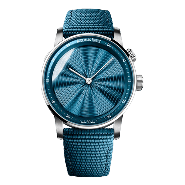 Part of a trilogy of Code 11.59 by Audemars Piguet Grande Sonnerie Supersonnerie, this one-of-a-kind timepiece blends age-old techniques with contemporary design. The 18-carat white gold case is enriched with a bespoke guilloché and flinqué enamel dial in blue hues, crafted in collaboration with engine-turning artisan Yann Von Kaenel and enameller Anita Porchet.