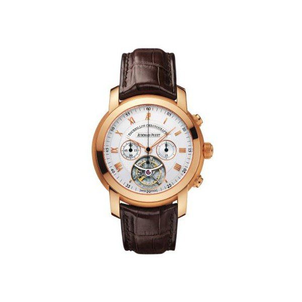43 mm 18kt rose gold case, 14mm thickness, silver dial, transparent case back, brown leather strap, deployant buckle clasp, manual winding movement.