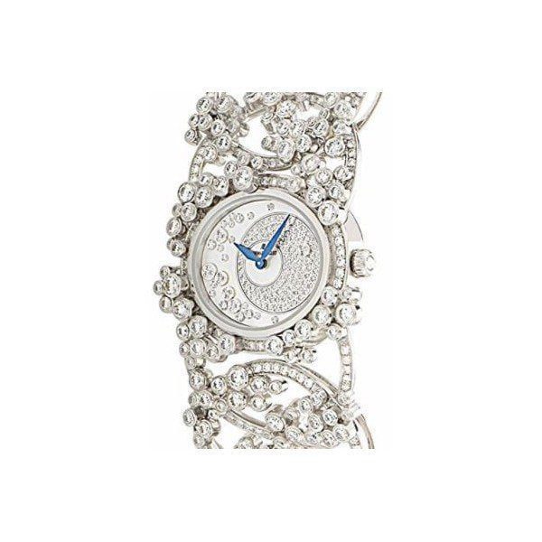 25 x 28 mm 18kt white gold case, manual winding movement, sapphire glass, mother of pearl dial, power reserve 40 h.