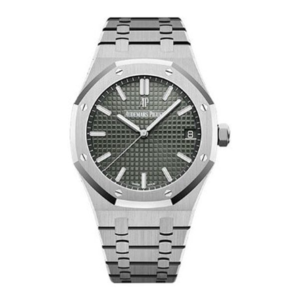 The Audemars Piguet Royal Oak 15500ST.OO.1220ST.02 is stainless steel case, glareproofed sapphire crystal and caseback, screw-locked crown. Slate grey dial with “Grande Tapisserie” pattern, white gold applied hour-markers and Royal Oak hands with luminescent coating. Stainless steel bracelet with AP folding clasp. Powered by the natural movements of your wrist.