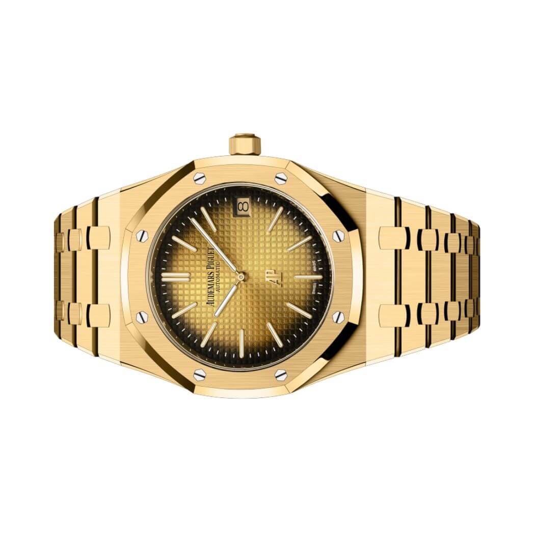 The Royal Oak 16202BA.OO.1240BA.02 features a 39 mm case made of exquisite 18k yellow gold. The case is beautifully complemented by a smoked yellow-gold-tone Petite Tapisserie dial, which adds a touch of sophistication. The dial is protected by a glareproofed sapphire crystal, ensuring durability and clear visibility.