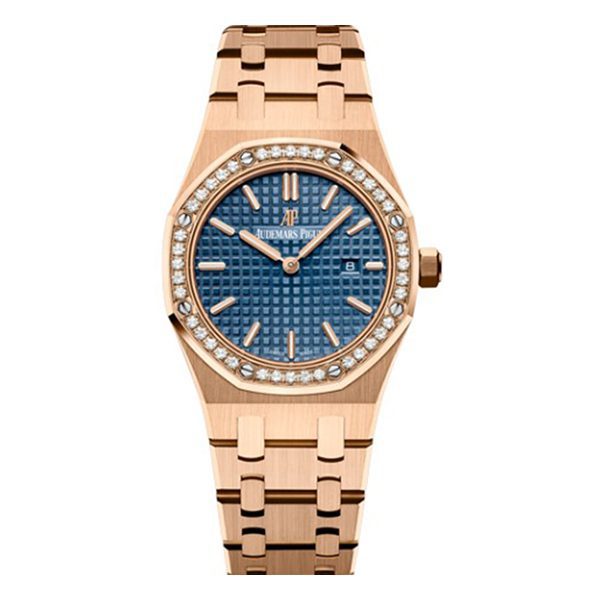 Audemars Piguet Royal Oak 15551OR.ZZ.1356OR.05 Rose Gold with Diamond Bezel Blue Dial 37mm Unisex Watch