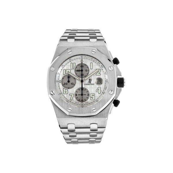 44mm stainless steel case, automatic movement, screw down crown, deployment buckle clasp, Guilloche Silver Dial with Gray Subdials, fixed bezel, water resistant to 100m/330ft.