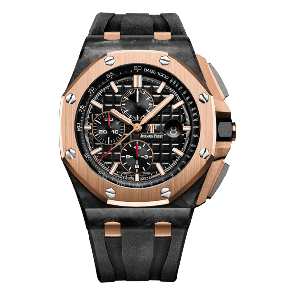 44mm 18kt rose gold case, black dial, transparent case back, power reserve 50 h, automatic movement, deployment clasp, black rubber strap, scratch resistant sapphire crystal, fixed bezel, water resistant to 100m/330ft.