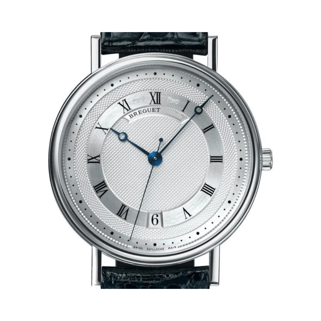 The Breguet Classique 5930BB/12/986 is a luxurious timepiece that blends classic elegance with modern functionality. Designed for both men and women, this watch features a 35.5mm 18K white gold case, adding a touch of sophistication to any outfit. The silvered gold dial is hand-engraved on a rose engine, giving it a stunning and detailed appearance.