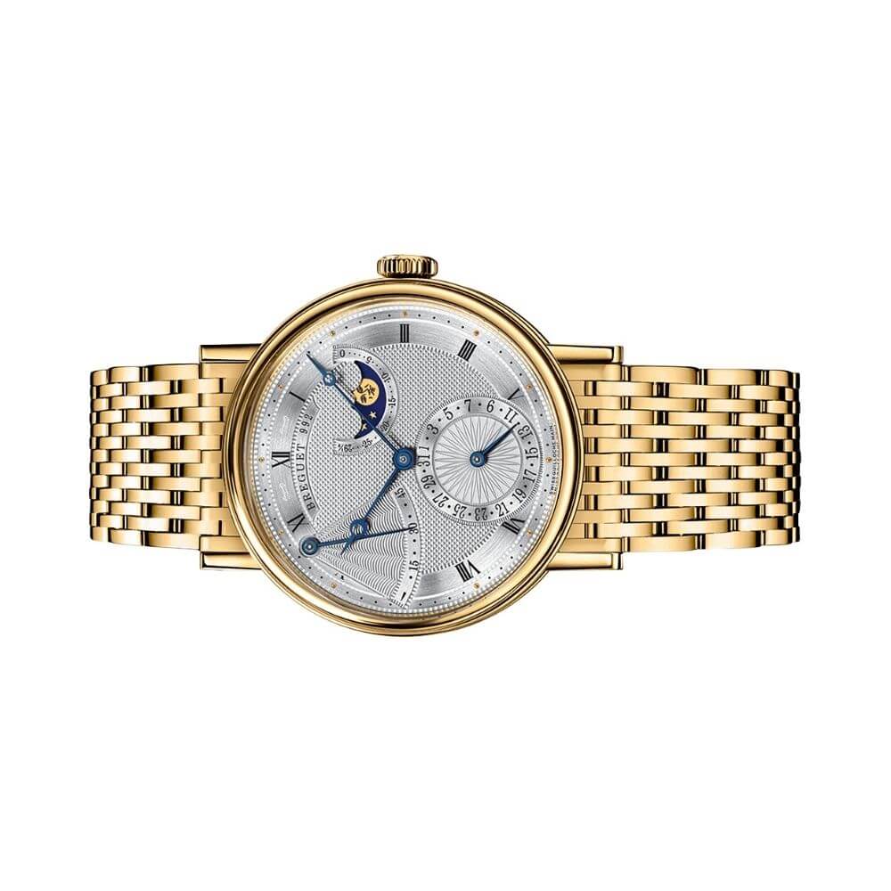 The dial of the Breguet Classique 7137BA/11/AV0 features a silver hue, creating a clean and sophisticated backdrop for the watch’s functions. The scratch-resistant sapphire crystal protects the dial, ensuring long-lasting clarity and durability.