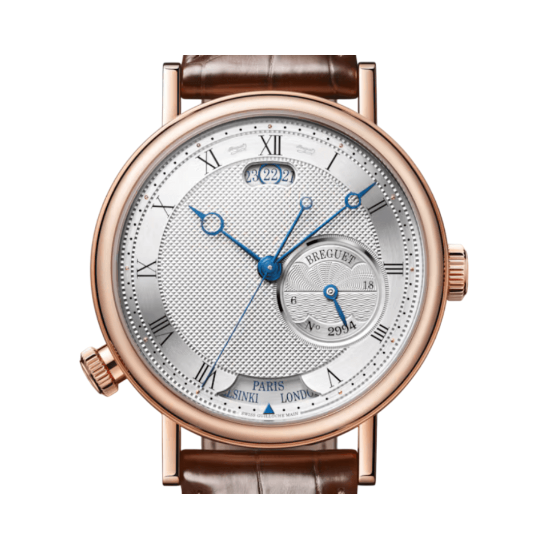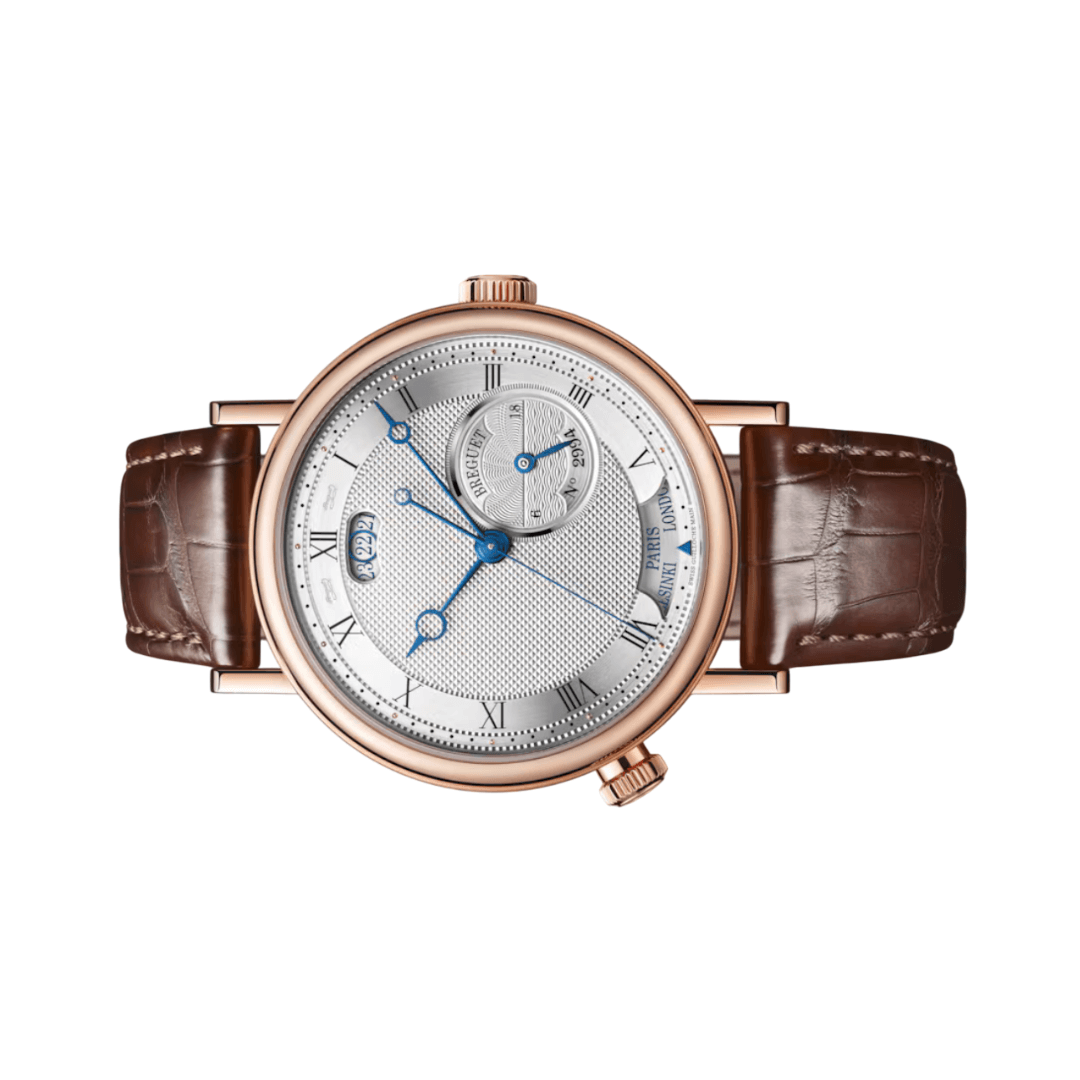 The Breguet Classique Hora Mundi 5727BR/12/9ZU is a luxury timepiece crafted with precision and elegance. It features a 43mm round case made of 18K rose gold, giving it a sophisticated and timeless appeal. The silver dial enhances the classic look, making it a perfect choice for those who appreciate fine watchmaking.