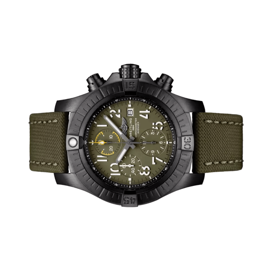 Equipped with a Swiss-made automatic movement, the Breitling Avenger V13317101L1X2 guarantees precision and reliability. The watch also includes a chronograph function, allowing you to measure short time intervals easily. Additional features include a date indicator, making it practical for everyday wear. With a water resistance of up to 300 meters (30 ATM), it’s perfect for water sports, swimming, or even diving.