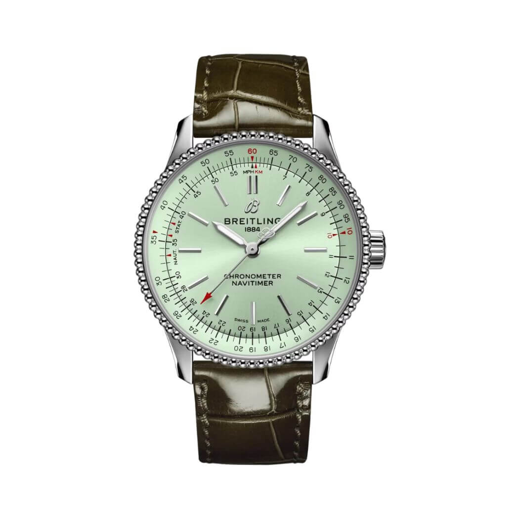 The Navitimer Automatic 35 offers a range of dial colors, from classic shades to the exquisite diamond-set white mother of pearl, catering to diverse tastes. The choice of a matching bracelet or an alligator strap, complemented by a stainless steel pin or folding buckle, provides versatility in style.