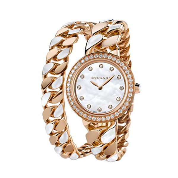 Dial: White mother of pearl dial with 12 diamond hour markers