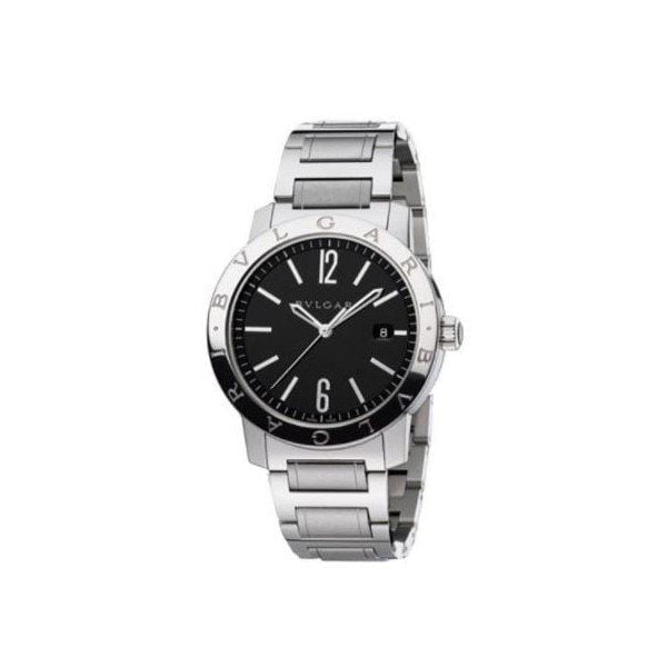 41 mm stainless steel case, stainless steel crown with black ceramic insert, stainless steel bezel with Bulgari logo, sapphire crystal, black dial, BVL 191 – caliber automatic movement, approximately 42 hours of power reserve, stainless steel bracelet, folding buckle. Water resistant to 100 ft.