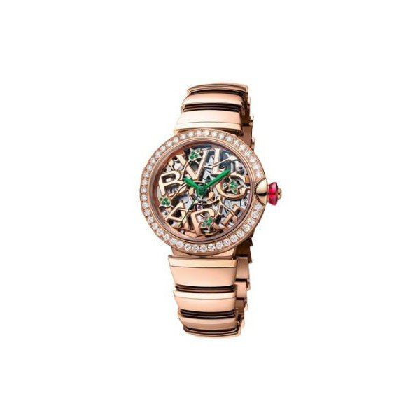 33mm 18kt rose gold case, logo set with diamonds and leaves set with brilliant-cut emeralds dial, automatic movement, scratch resistant sapphire crystal, water resistant to 50m/165ft.