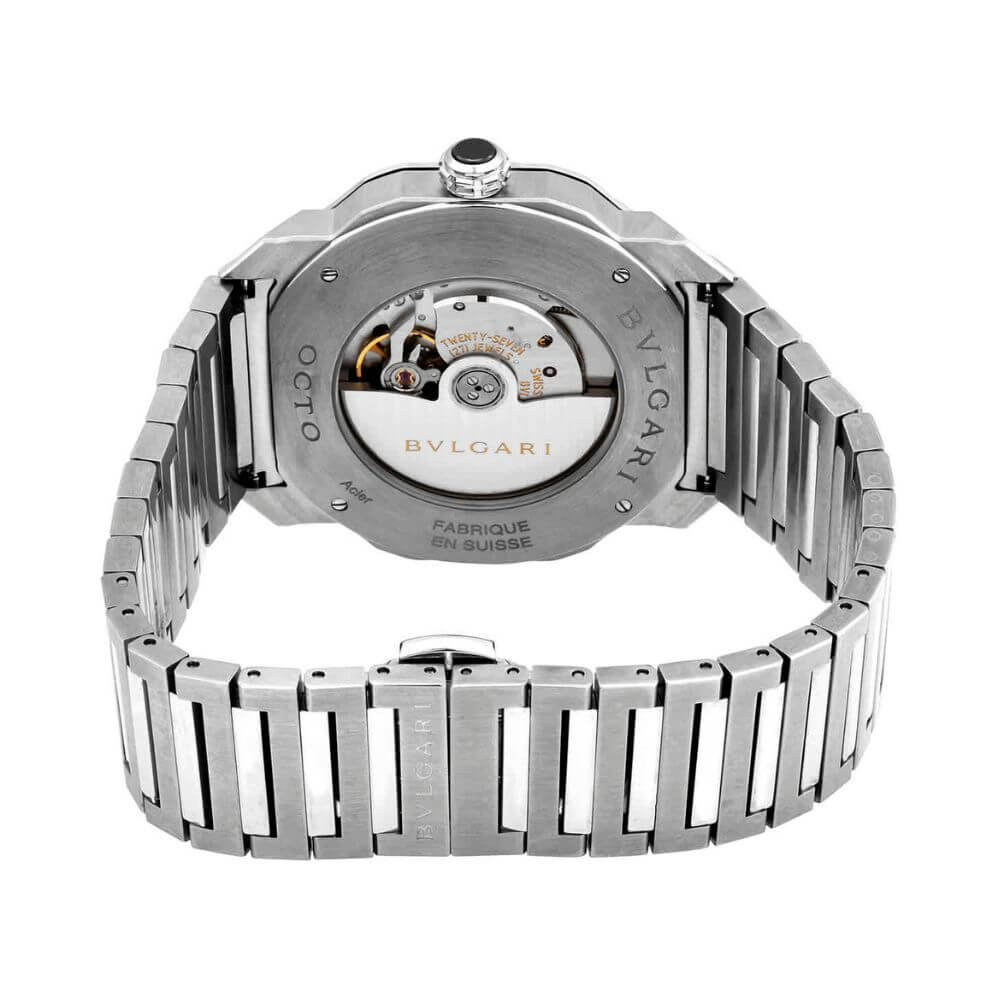 Under the hood, the Bvlgari Octo Roma 102704 OC41S is powered by the Bvlgari Calibre BVL 191 Solotempo Automatic movement. This impressive mechanism contains 26 jewels, operates at 28,800 vibrations per hour, and boasts a power reserve of approximately 42 hours. It’s a reliable companion for your daily activities.
