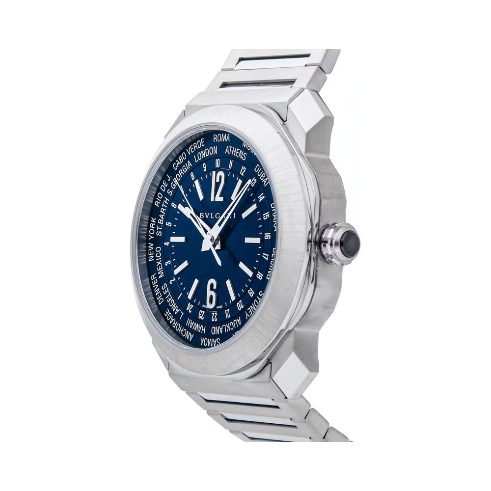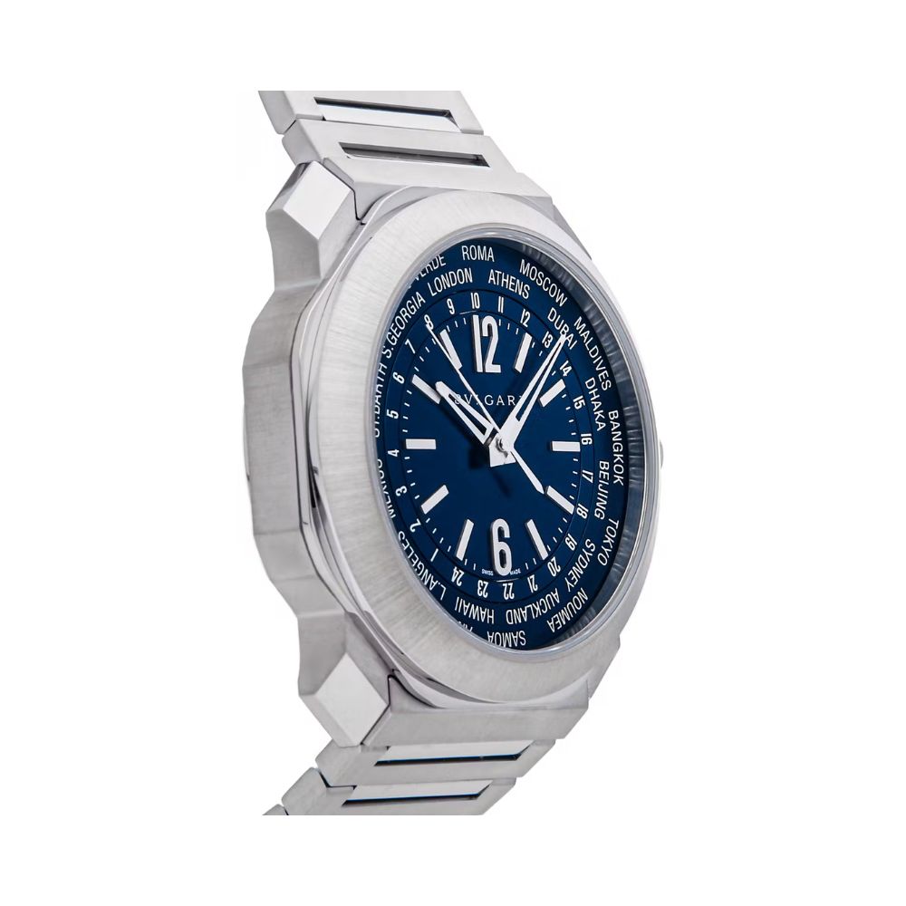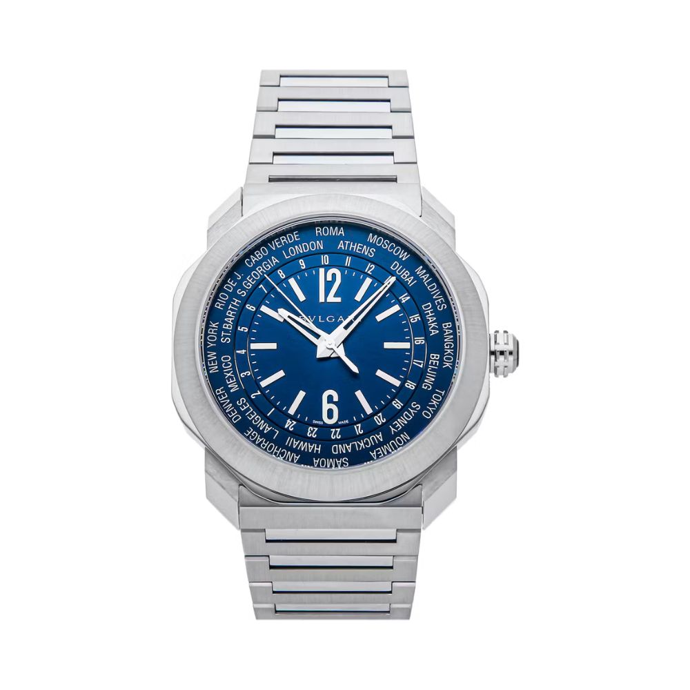 The Octo Roma watch comes encased in a satin-brushed and polished stainless steel case, giving it a sleek and modern appearance. Its octagonal shape adds a touch of uniqueness, setting it apart from conventional watch designs. The matching stainless steel bracelet features a triple-blade folding clasp for secure and comfortable wear.