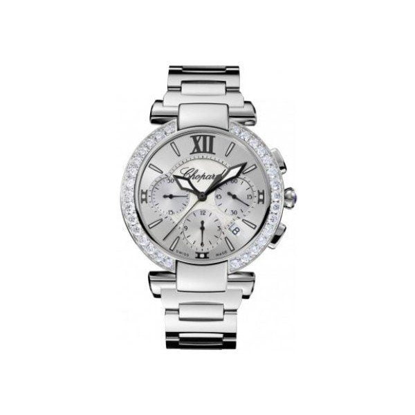 40mm stainless steel case, 9mm thickness, mother of pearl dial, fixed bezel, transparent case back, hidden folding clasp, automatic movement, water resistant to 50m/165ft.