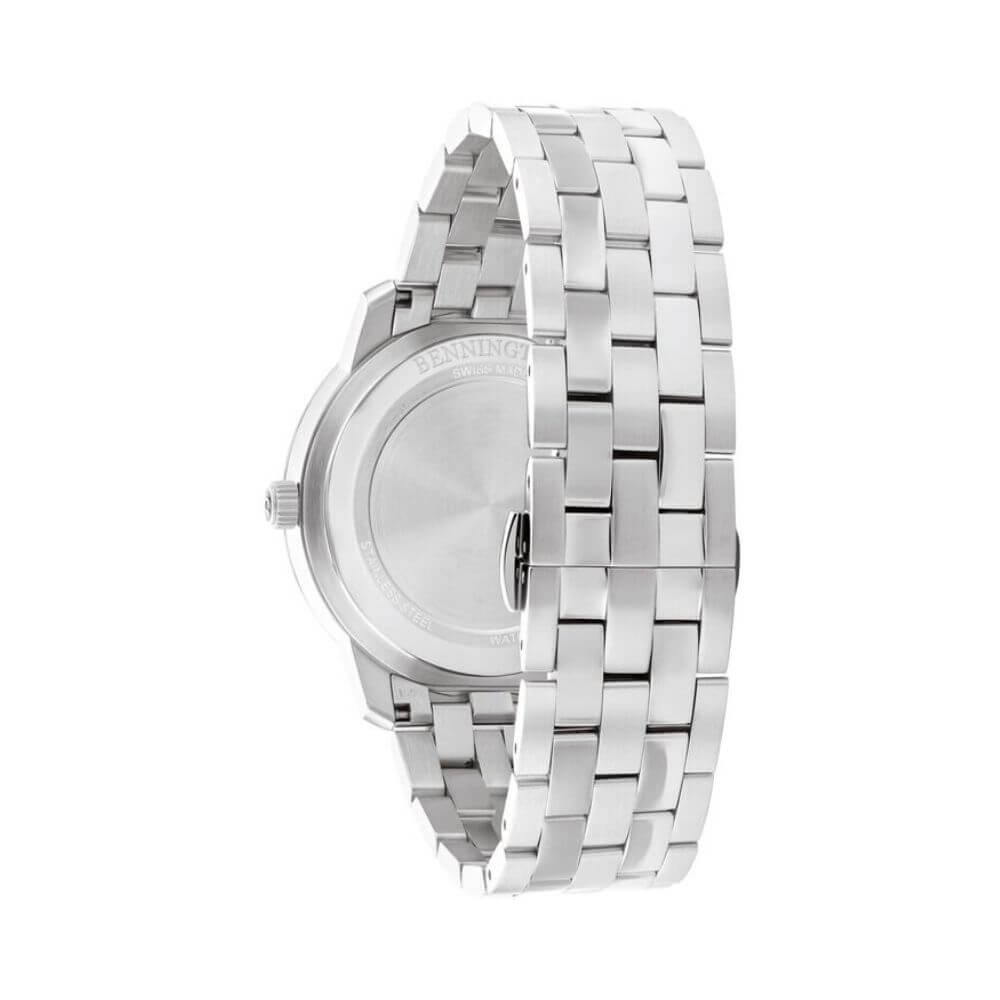 The Concord Bennington 0320485 features a silver stainless steel case and band. This not only adds durability but also a touch of sophistication to your wrist. The 40mm case size is just right, not too big and not too small, making it suitable for various occasions.