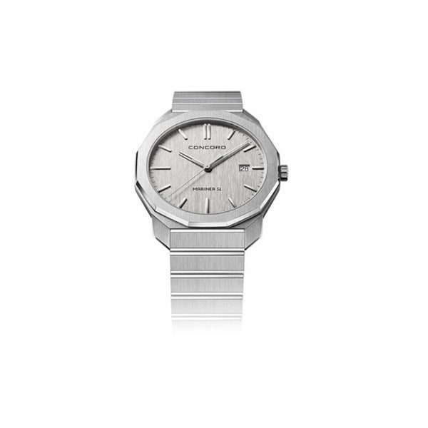 40mm stainless steel case, 5.85 mm thick, with brushed and polished finishing and sapphire antireflective underneath, 5 bars water-resistance; silver galvanic dial with rhodium plated indexes and date window; diamond-polished rhodium-plated hour, minute and seconds hands; brushed and polished stainless steel bracelet with push-button deployement buckle.