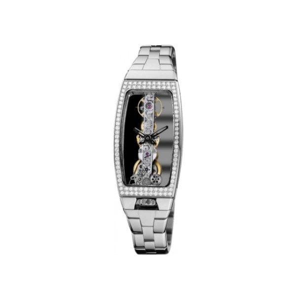 43 mm x 21 mm 18kt white gold case, transparent case back, power reserve 40 h, deployment clasp, pull out crown, manual wind movement.