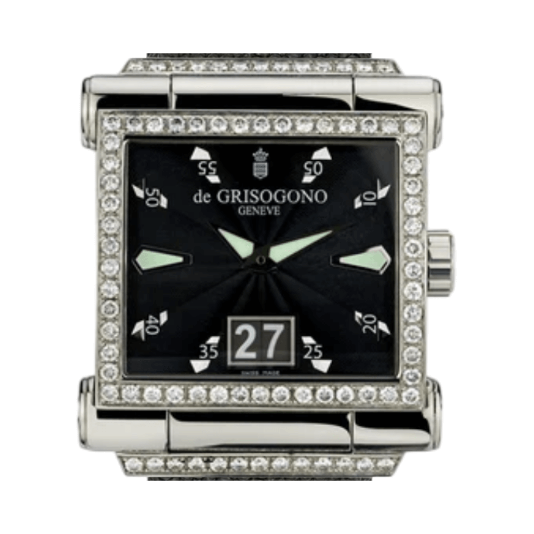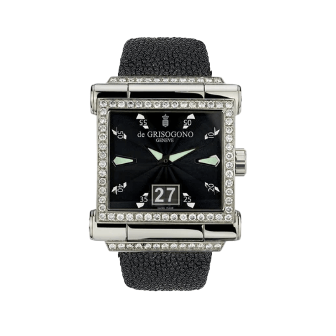 The De Grisogono Instrumento Grande N01 Diamonds Fixing Black Dial Unisex Watch is a perfect blend of elegance and precision. This exquisite watch showcases a stunning contrast of black and white, making it a timeless piece for watch collectors and luxury enthusiasts.
