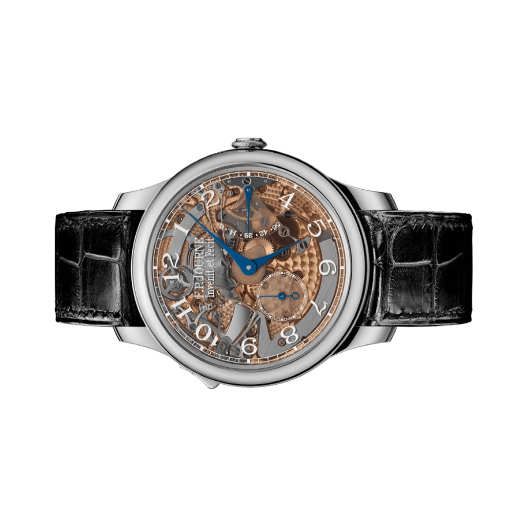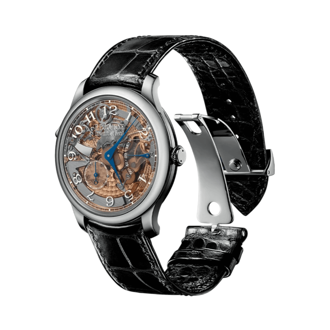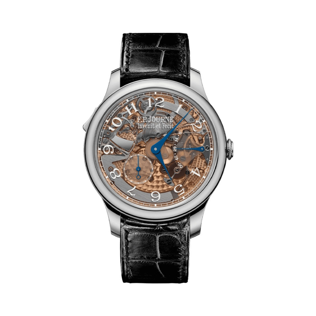 The F.P.Journe Classique Repetition Souveraine is a beautifully designed men’s watch that reflects timeless elegance. Made from stainless steel, this watch features a 40mm circular case with a 9mm thickness, making it a perfect fit for any wrist. Its black dial and sapphire glass add a touch of luxury, while the transparent case back allows you to admire the fine craftsmanship inside.