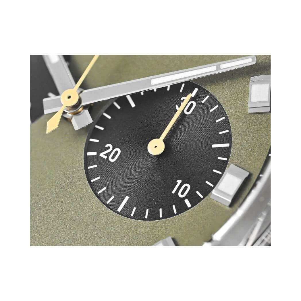 Powered by the ETA Valjoux 7753 calibre, the automatic movement ensures precision with a 48-hour power reserve. It features a beat rate of 28,800vph, hacking seconds, and quick-set date functions.