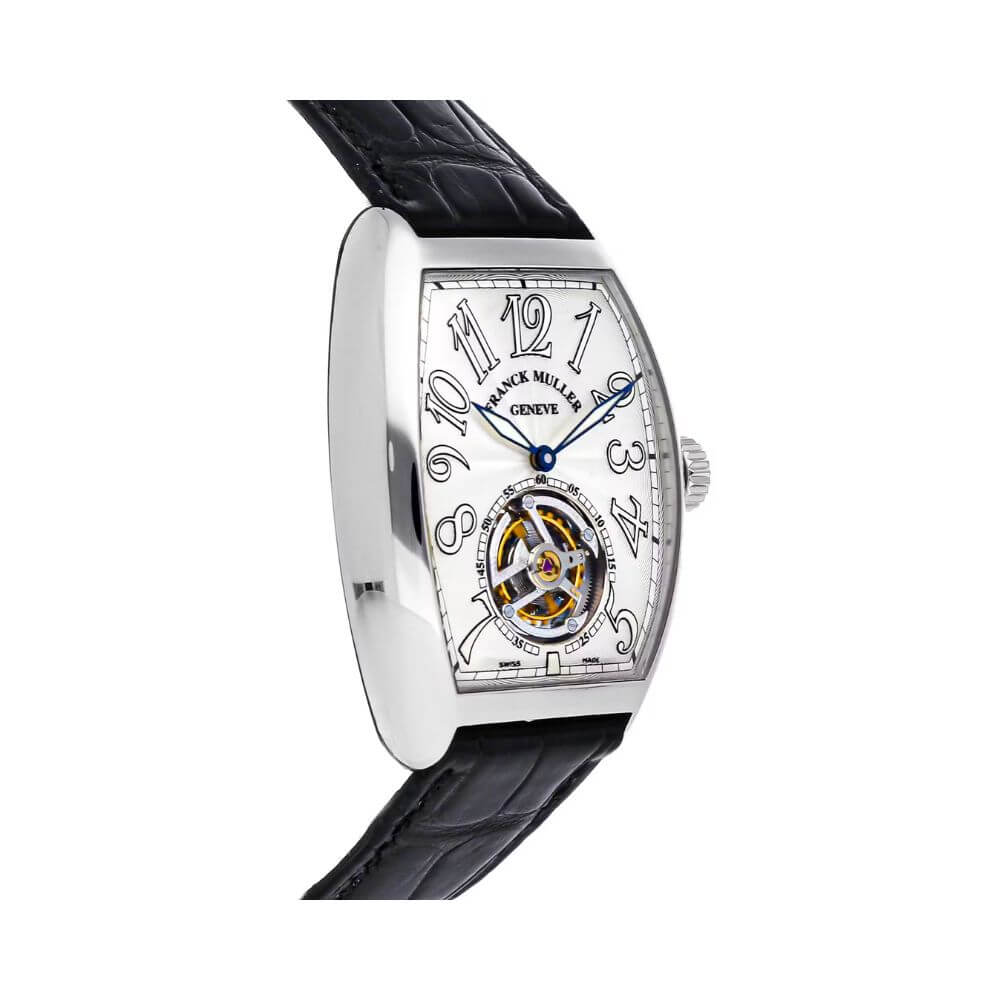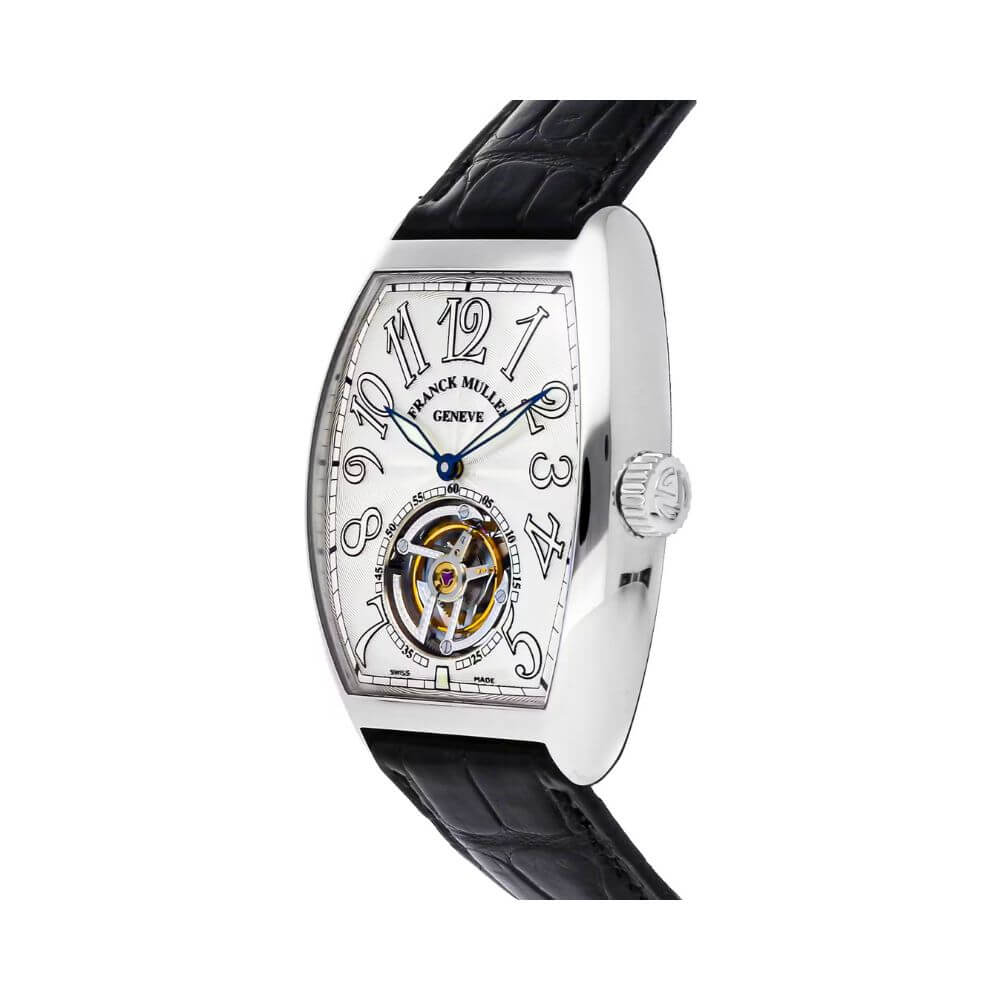 The Frank Muller 7851 T features a 42mm x 35mm platinum case, providing durability and a touch of luxury. Its unique tonneau shape sets it apart from ordinary watches. The silver guilloche dial adds a touch of refinement, complemented by Arabic hour markers that make reading time a breeze.