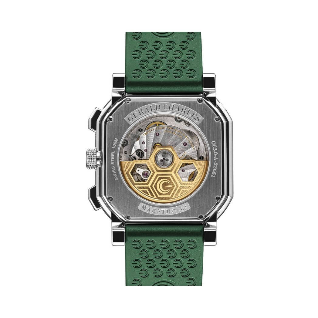 The GC3.0-A-02 stands out with its asymmetrical polygon case, a modern twist on the iconic Maestro design. The 40mm case boasts refined squared angles, making a subtle yet impactful statement. The bespoke chronograph pushers and a slim profile of 11.5mm ensure a comfortable fit, tested for water resistance with the help of Olympic swimmer Luca Dotto.