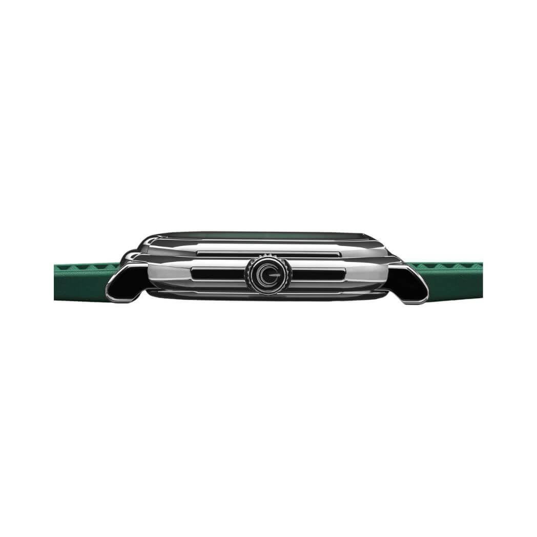 The see-through case back provides a glimpse into the intricate workings of the GCA 3002 calibre. The sapphire crystal ensures a clear view of the green dial, enhancing the watch’s overall allure.