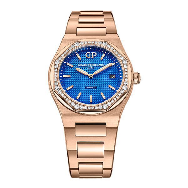 The intensely feminine Girard Perregaux Laureato 80189D52A434-52A 34 mm Royalty is a concentrated blend of emotions, distilling fascinating glimpses of Manufacture Girard-Perregaux’ history through the finishing of its quartz movement visible through the transparent back case . Available in pink gold with a diamond-set bezel, this icon first launched in 1975 renews ties with its past, once again effectively shaking up the design codes of traditional watchmaking.