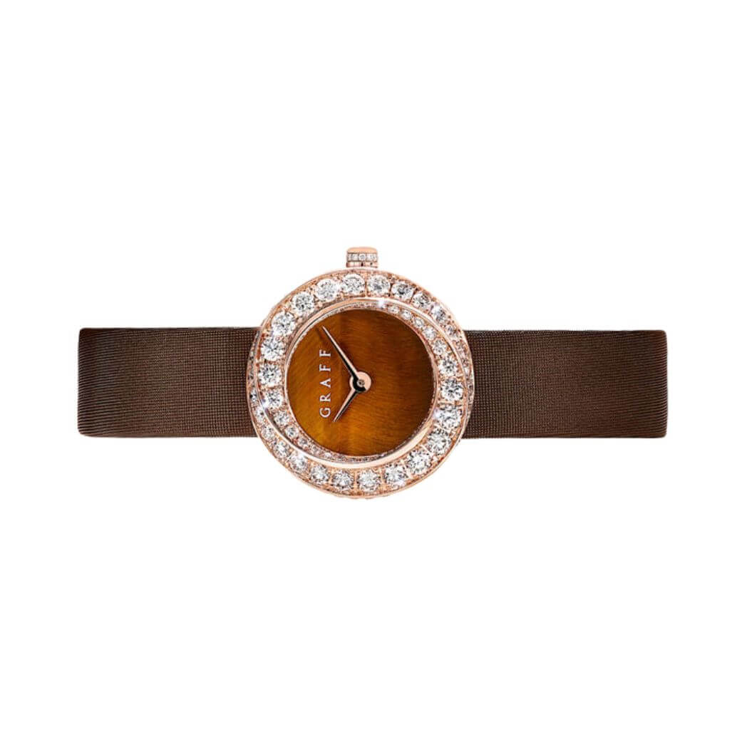 Graff Spiral GSP23PGD Tigers Eye DIal Rose Gold Brown Satin Strap