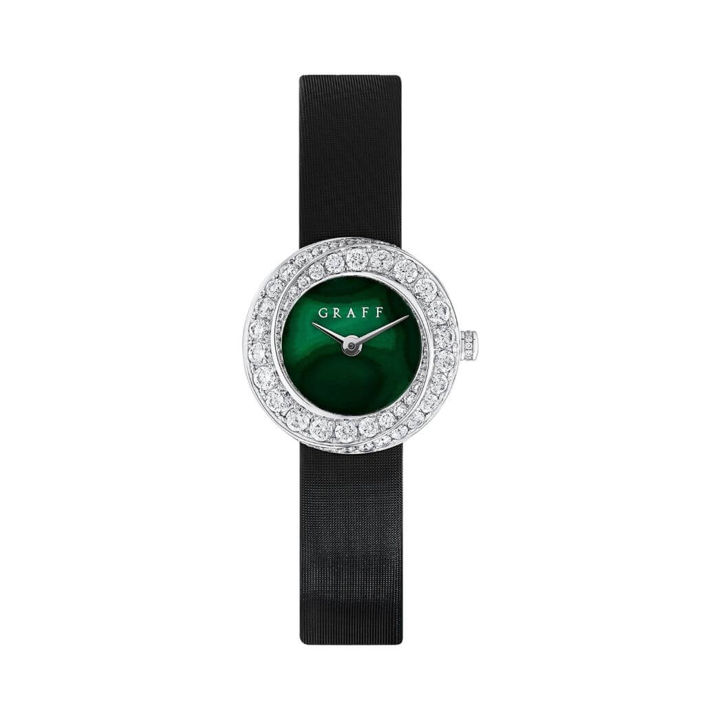 Discover timeless elegance with the Graff Spiral GSP23WGD Ladies Watch, a masterpiece from Graff’s Spiral collection. Crafted with precision, this watch combines the allure of white gold, the brilliance of diamonds, and the richness of malachite to create a symbol of eternal love.