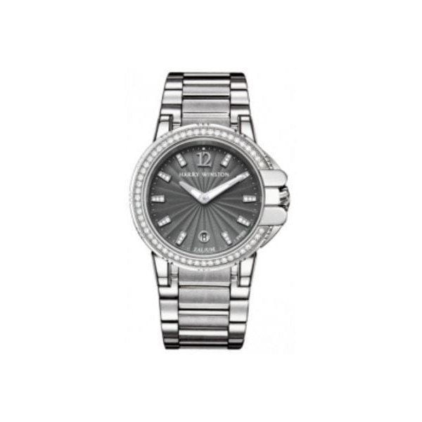 36 mm case dimension, 9 mm thickness, gray dial, scratch resistant sapphire crystal, quartz movement, fold over clasp, water resistant to 200m/656ft.