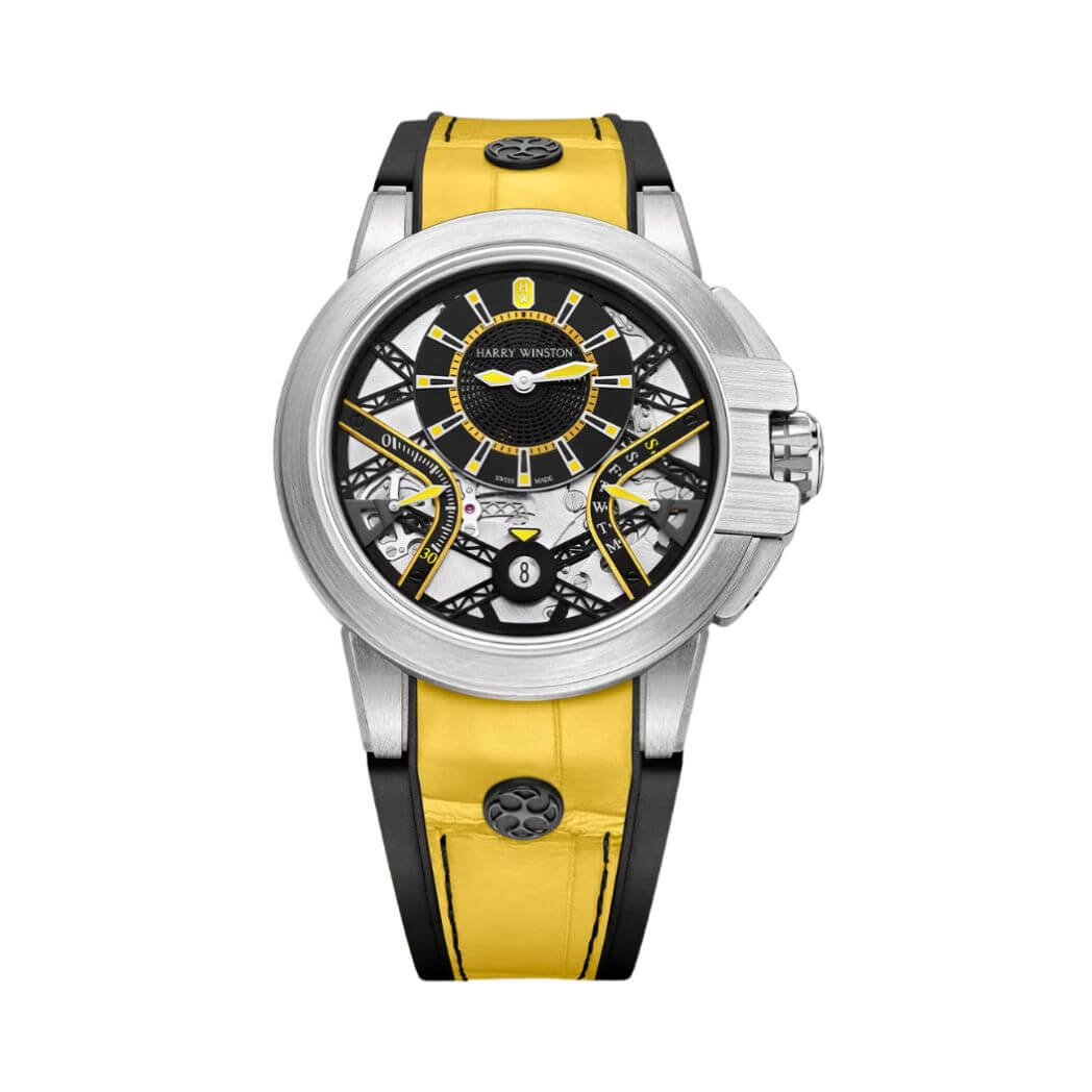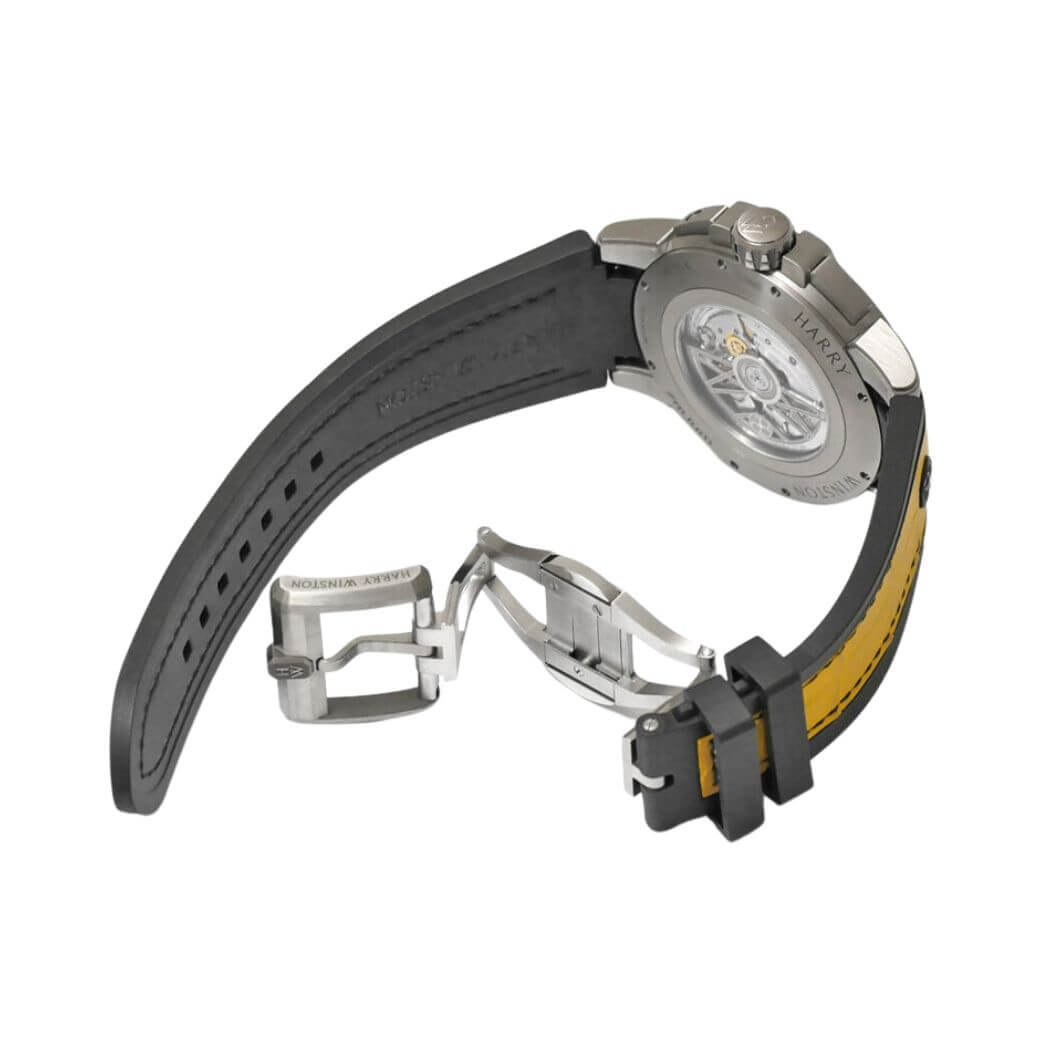 Bracelet: Yellow alligator leather with black rubber base