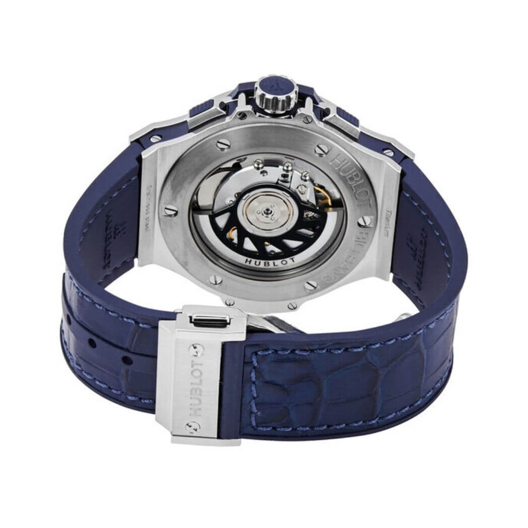 Designed with the wearer in mind, the watch features a Rubber & Leather strap in a matching Blue hue. This combination not only enhances comfort but also adds a touch of contemporary style to the overall design.