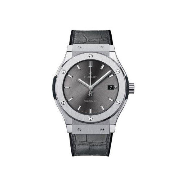 Powered by an automatic movement, the Hublot Classic Fusion 565.NX.7071.LR ensures accurate timekeeping and reliable performance. With a push-button folding clasp, the watch securely fastens to your wrist, offering comfort and convenience. The grey leather strap adds a luxurious touch and enhances the overall aesthetics of the timepiece.