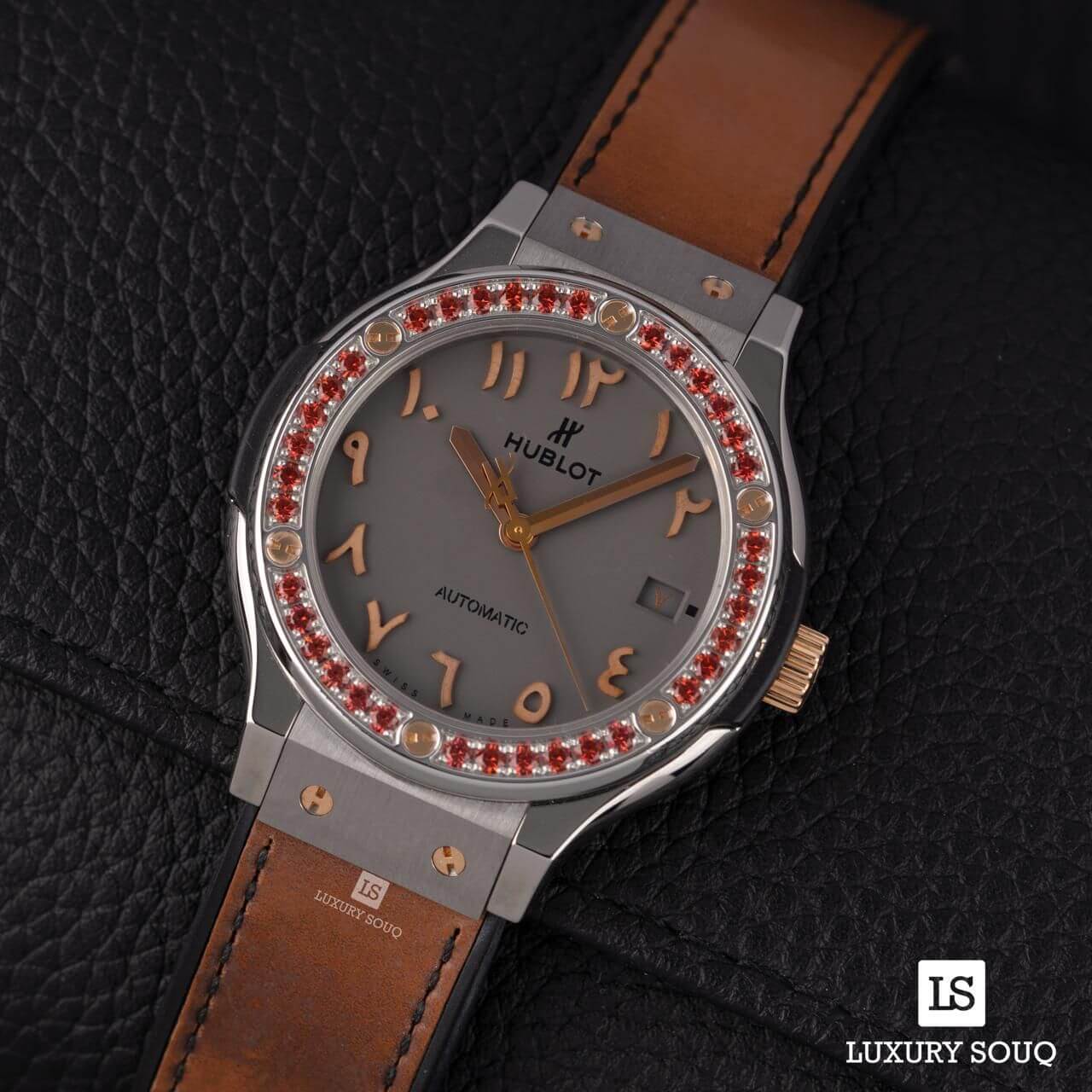 Discover the perfect blend of elegance and durability with the Hublot Pre-Owned 565.NX.5710.VR.1208.SDQ15, a remarkable timepiece from Hublot’s acclaimed Classic Fusion collection. This pre-owned ladies’ watch, full of charm and character, offers you the opportunity to own a piece of Hublot’s renowned craftsmanship without the brand-new price tag.