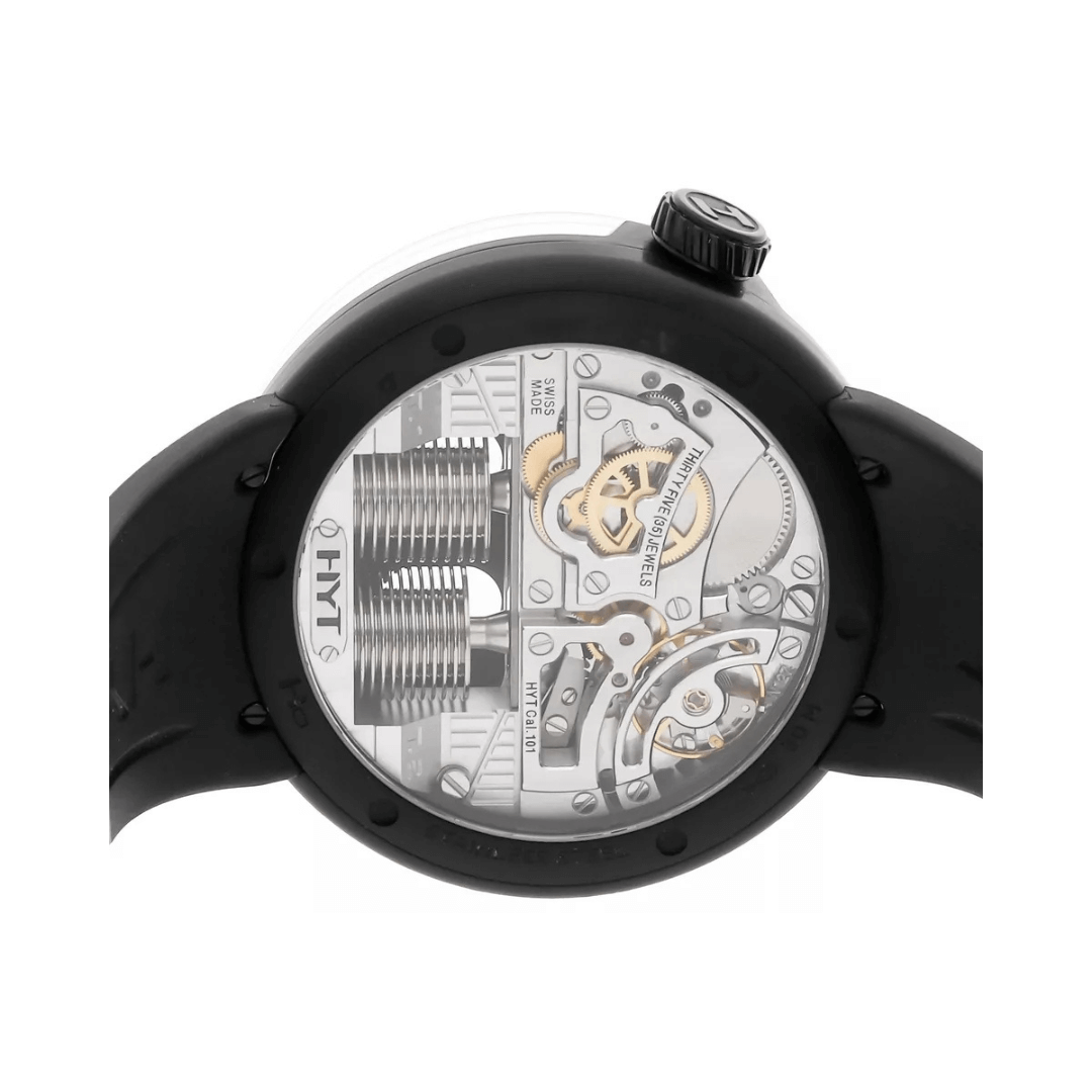 With a water resistance of 30 meters (3 ATM), the HYT H0 Black Coated H00826 can handle occasional splashes or light rain, making it suitable for daily activities. The exhibition caseback provides a glimpse into the intricate mechanics, showcasing the watch’s technical excellence.