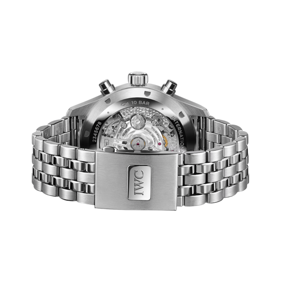 The IWC Pilot’s Watch IW378006 Chronograph is a stylish and high-performance timepiece designed for aviation enthusiasts. This 43mm stainless steel watch features a durable 5-link stainless steel bracelet, making it both elegant and robust. The watch is powered by the IWC-manufactured 69385 calibre automatic movement, ensuring precise timekeeping with a 46-hour power reserve.