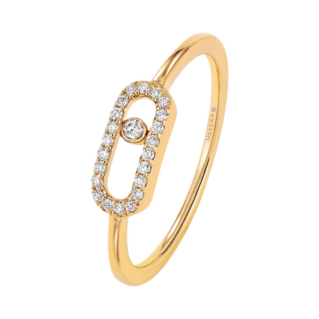 The ring features a fine minimalist style, making it versatile for various occasions. Whether worn alone or stacked with another Move Uno diamond ring, it adds a touch of sophistication to your ensemble. The resurgence of yellow gold in the last two years showcases the timeless appeal of this ring.