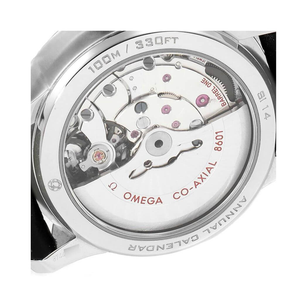 Powering this masterpiece is the OMEGA Co-Axial calibre 8601, providing a seamless and precise timekeeping experience. The intricate workings of the movement are visible through the transparent caseback, adding an element of fascination to the overall design.