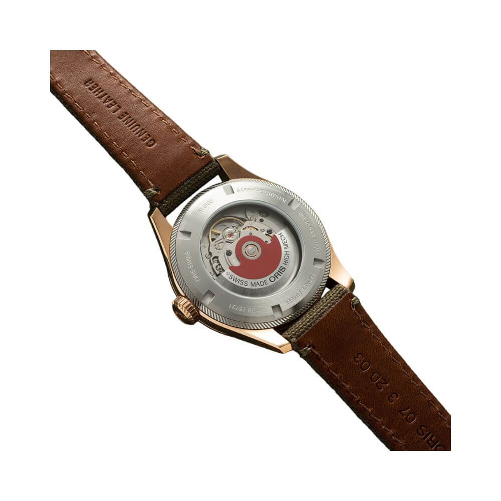 The watch features a bronze case that measures 41.00 mm (1.614 inches). Bronze is not only strong but also gives the watch a unique look. The case back is made of stainless steel for durability.