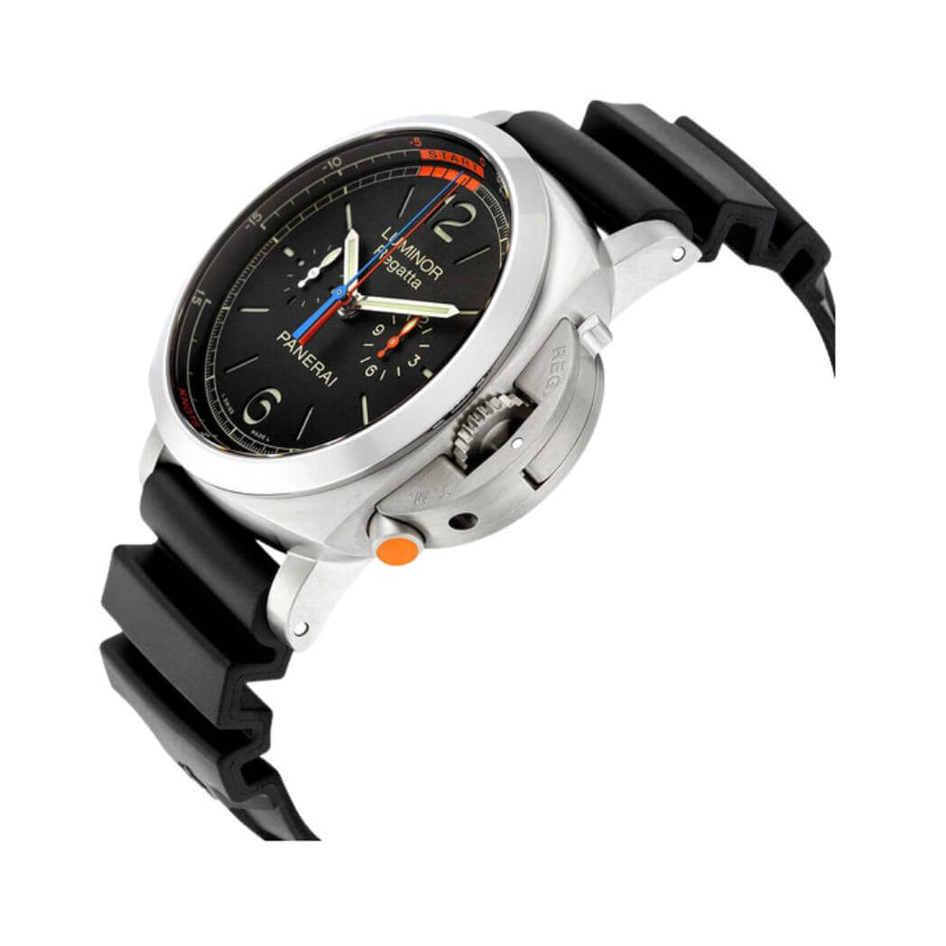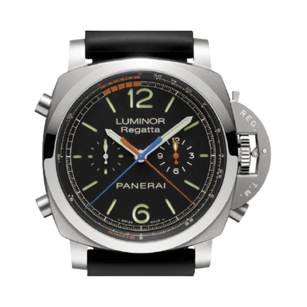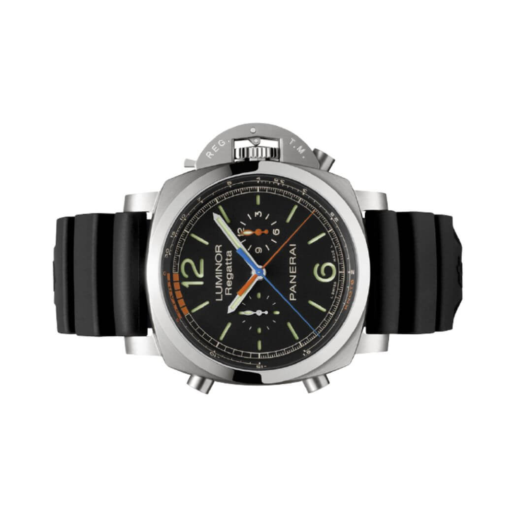 Movement: Calibre p.9100/r automatic movement with hours, minutes, small seconds, chronograph flyback, regatta contdown, seconds reset