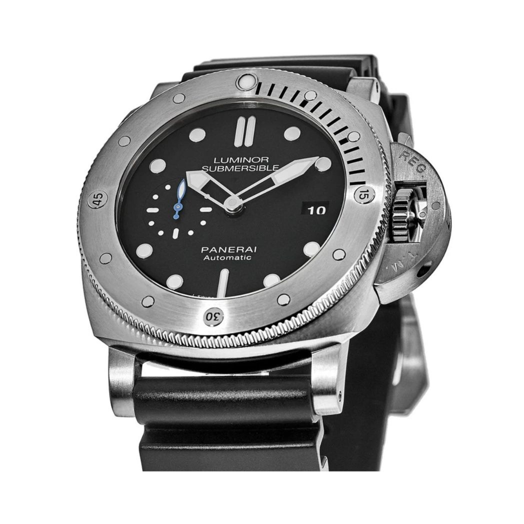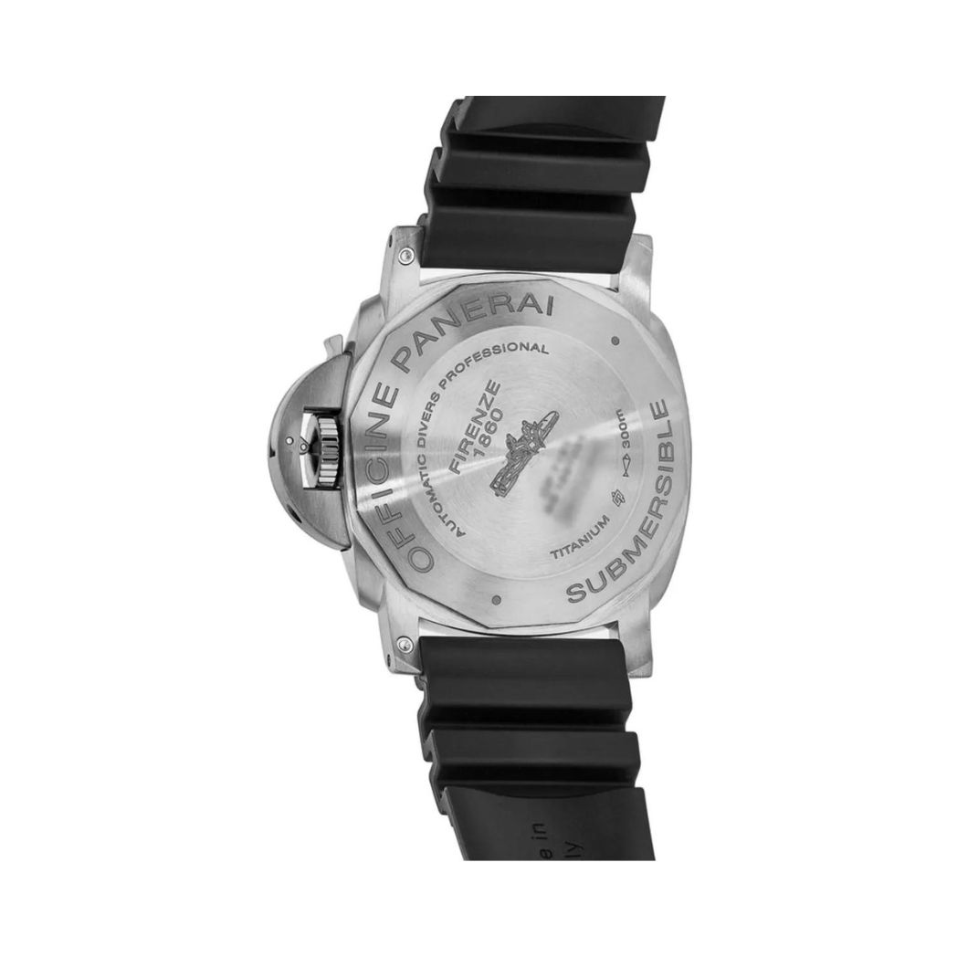 47mm Titanium case, Black dial, Scratch Resistant Sapphire crystal, Uni-Directional Rotating bezel, Solid case back, Tang Buckle clasp, Automatic movement, power reserve 72h, 31 jewels, water resistance to 300m/990ft.