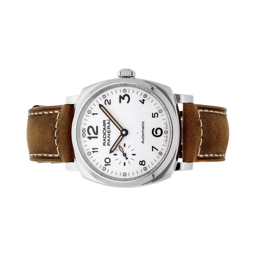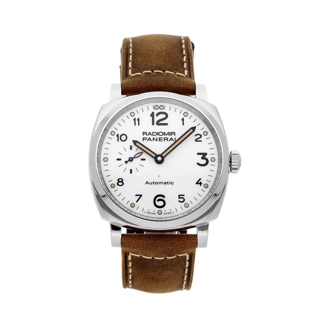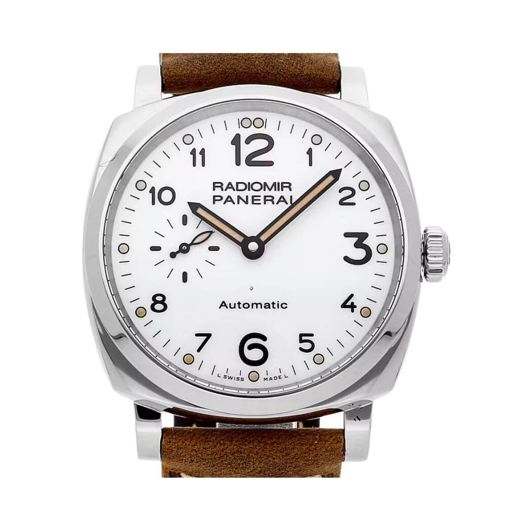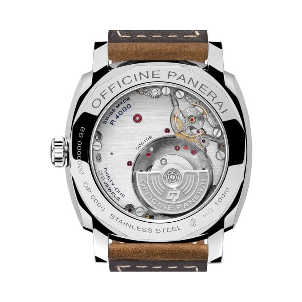 42mm stainless steel case, white dial?with black hands and Arabic numeral hour markers,?Skeleton Transparent Exhibition See Through case back, automatic movement, power reserve 72 h / 3 days,?Scratch Resistant Sapphire Crystal, fixed bezel, cream leather strap, water resistant to 100m/330ft.