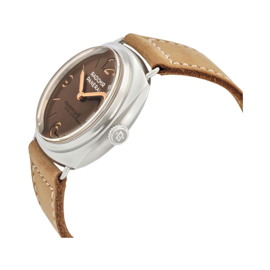 Crafted with precision, the case of the PAM02020 is made from durable stainless steel, ensuring longevity. The round case shape exudes classic elegance, complemented by a scratch-resistant sapphire crystal that protects the striking brown dial. The 45mm diameter adds a bold presence to your wrist.