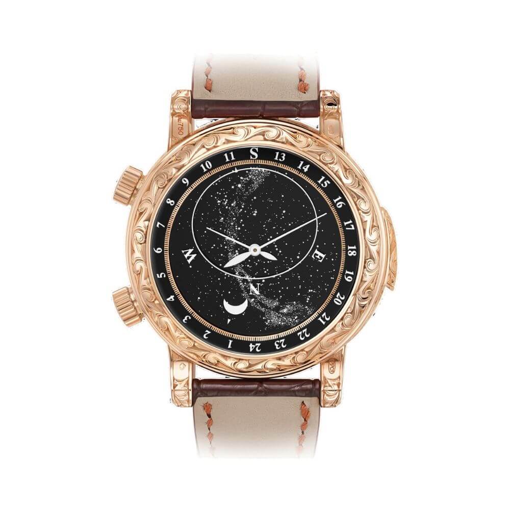 • Complications: Hours, Minutes, Date, Day, Leap Year, Perpetual Calendar, Moon Position/Rising Time, Moon Phase, Sidereal Time, Sky Chart, Minute Repeater, Tourbillon Escapement