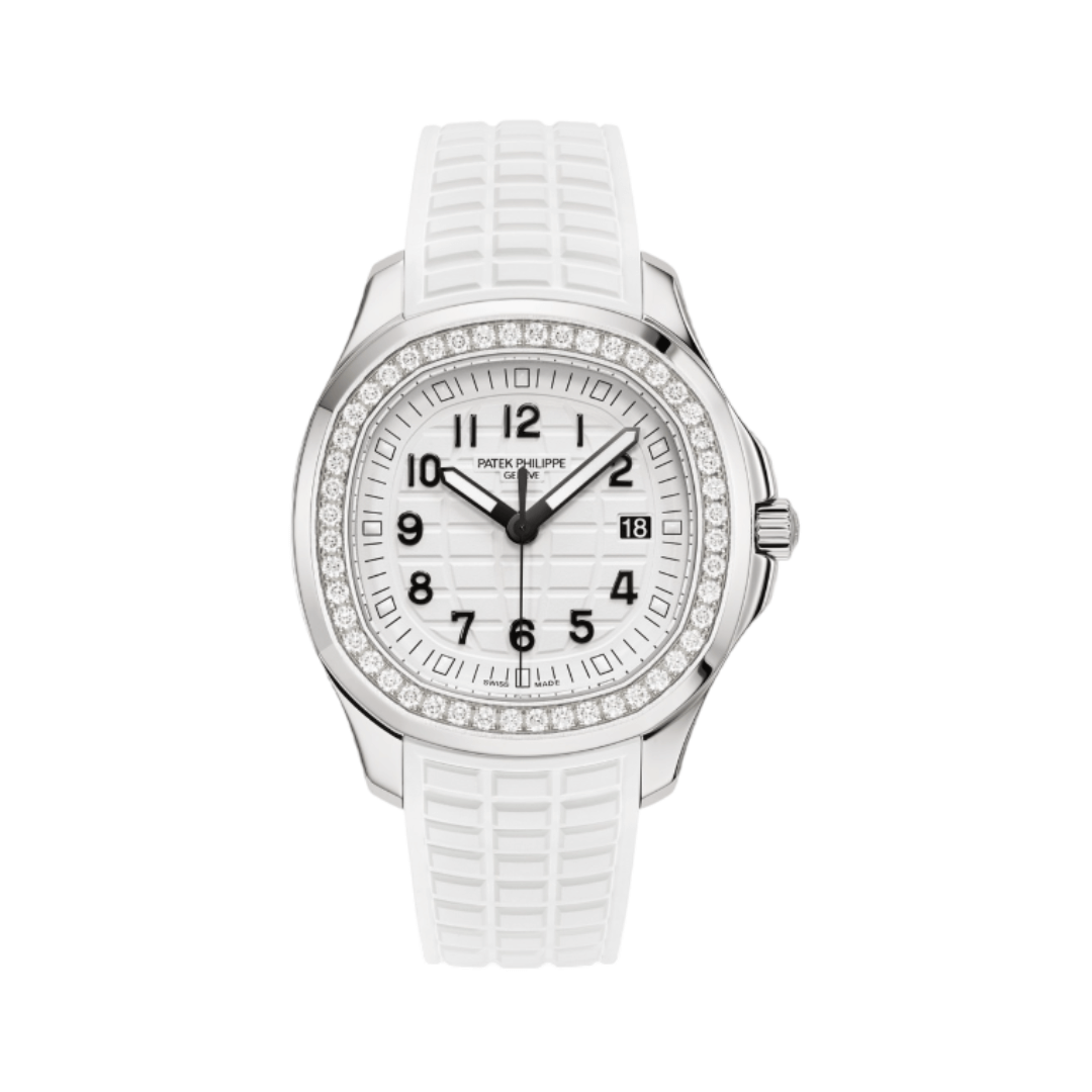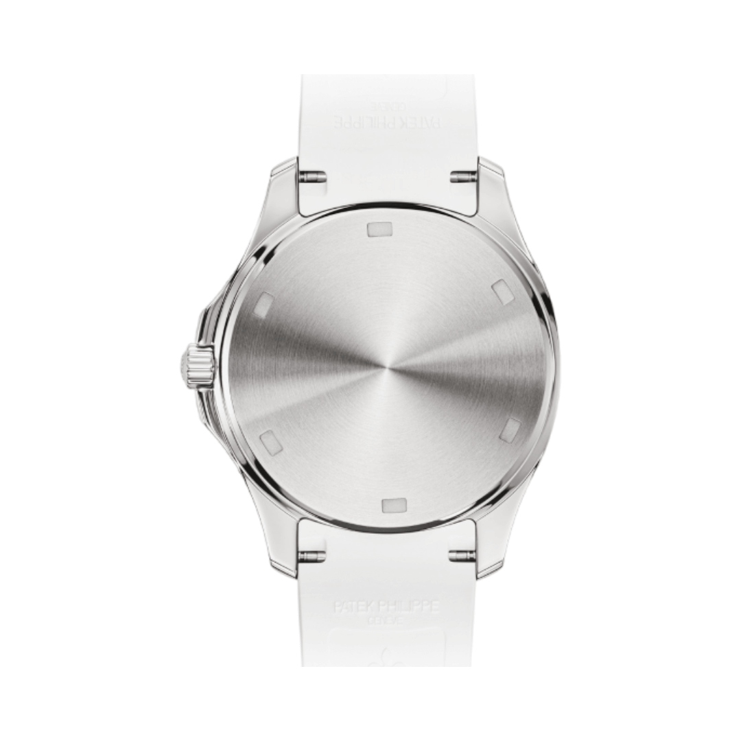 A highlight of this timepiece is its diamond-set bezel, featuring a row of 48 diamonds totaling 1.11 carats. These exquisite diamonds add a touch of luxury and sophistication to the watch. The matted white dial showcases the iconic aquanaut pattern and is adorned with blackened gold applied numerals, creating a captivating contrast.