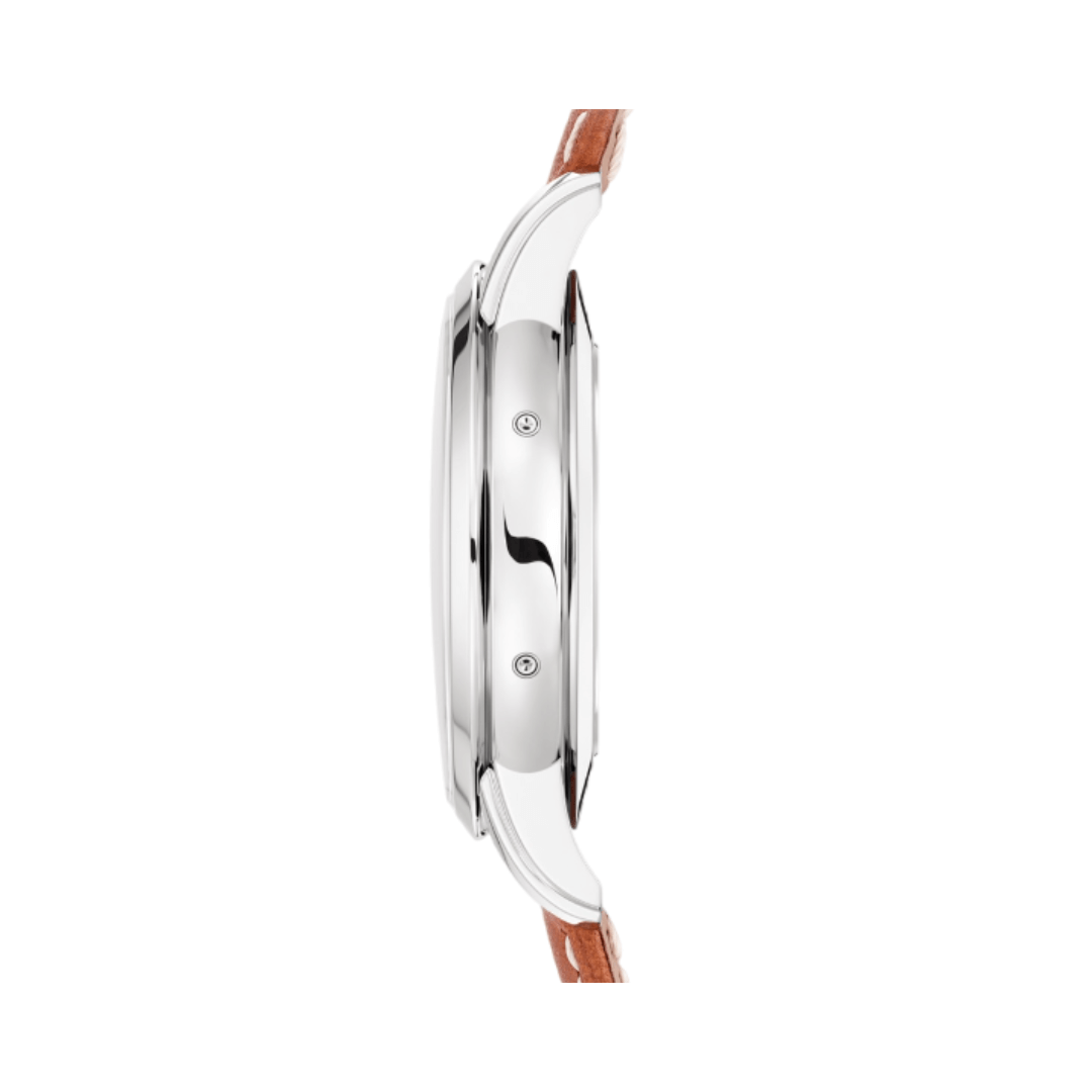 The watch’s shiny opaline dial has gold hour markers that look like they’ve been darkened, making it quietly stylish. What makes the dial really unique is the letters and numbers that look like they’ve been handwritten, adding a personal touch.