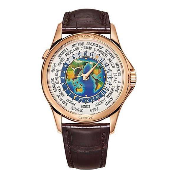 The Patek Philippe Complications World Time 5131R-001 combines features of two of Patek Philippe favorite models. The case and movement of the reliable world-time Ref. 5130 and the cloisonne enamel dial reminiscent of the vintage world-time Ref. 2523 are both present in Ref. 5131. Originally only available in yellow gold with a map of the Americas, the model was later introduced in white gold featuring a map of Asia, Africa and Europe, and lastly it was introduced in rose gold. Ref. 5131 is rare on the market as very few are produced every year due to the difficulty and amount of time required to create hand-made enamel dials; and because of that very nature, each dial could be considered unique.